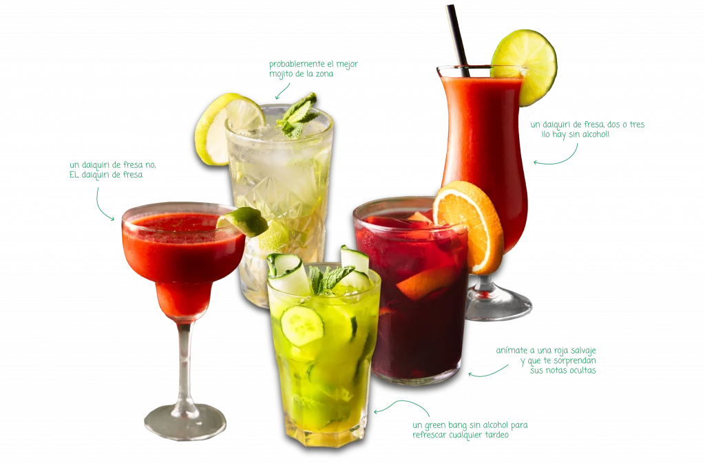 Mojito, La Roja Salvaje, Green Bang, Daiquiri… lo difícil es elegir solo uno.